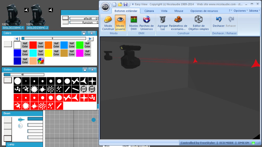 Esta Librería SSL2 está optimizada para trabajar con Magic 3d Easy View. Es decir para ver una representación 3D de las secuencias que estemos realizando con Freestyler, QLC+ o cualquier otro soft que se conecte con Magic 3d.
